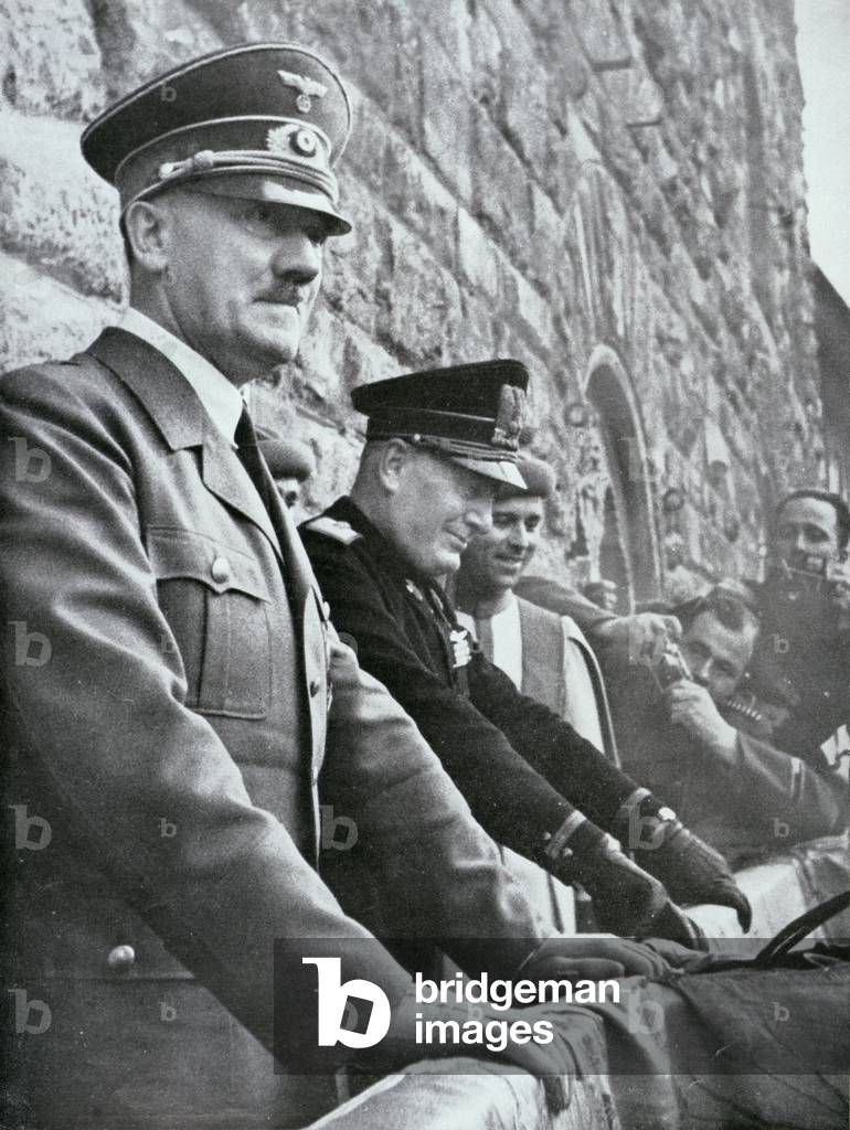 The Fuhrer and Il Duce on the balcony of the Palazzo Vecchio in Florence, from 'Signal' Magazine, Number 16, second edition of November 1940 (litho)