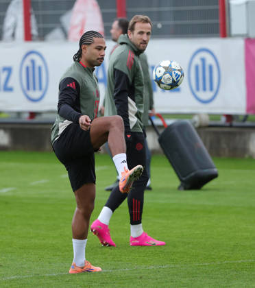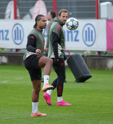 08.12.2025, Champions League, FC Bayern Muenchen, Abschlusstraining, Sabenerstrasse Muenchen, Fussball, im Bild: Serge Gnabry (FC Bayern Muenchen) und Harry Kane (FC Bayern Muenchen) *** 08 12 2025, Champions League, FC Bayern Muenchen, final training, Sabenerstrasse Muenchen, football, sports, in the picture Serge Gnabry FC Bayern Muenchen and Harry Kane FC Bayern Muenchen