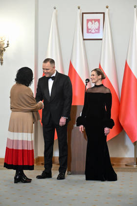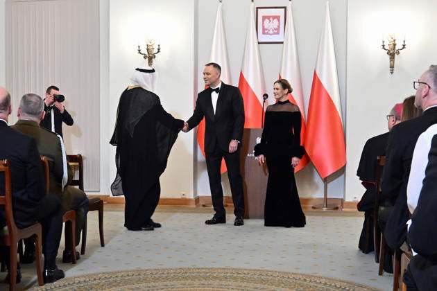 RECORD DATE NOT STATED 15.01.2026 WARSZAWA PALAC PREZYDENCKI COROCZNE SPOTKANIE PREZYDENTA Z KORPUSEM DYPLOMATYCZNYM 15 01 2026 WARSAW - PRESIDENTIAL PALACE ANNUAL MEETING OF POLISH PRESIDENT KAROL NAWROCKI WITH THE DIPLOMATIC CORPS AMBASADORZY I AMBASADORKI N Z KAROL NAWROCKI MARTA NAWROCKA STROJE WIECZOROWE SUKIENKA WIECZOROWA FOT DAMIAN BURZYKOWSKI NEWSPIX.PL NEWSPIX.PL --- newspix.pl PUBLICATIONxNOTxINxPOL