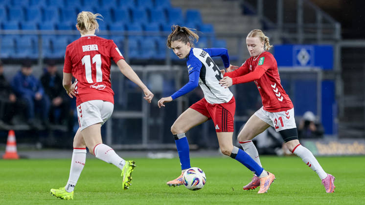 v.li.: Pauline Bremer (1. FC Köln, 11), Anna Gerhardt (1. FC Köln, 21) und Lotta Wrede (Hamburger SV, 32) im Zweikampf, Duell, Dynamik, Aktion, Action, Spielszene, DIE DFB-RICHTLINIEN UNTERSAGEN JEGLICHE NUTZUNG VON FOTOS ALS SEQUENZBILDER UND ODER VIDEOÄHNLICHE FOTOSTRECKEN. DFB REGULATIONS PROHIBIT ANY USE OF PHOTOGRAPHS AS IMAGE SEQUENCES AND OR QUASI-VIDEO., 08.12.2025, Hamburg (Deutschland), Fussball, Google Pixel Frauen-Bundesliga, Hamburger SV - 1. FC Köln *** from left Pauline Bremer 1 FC Köln, 11 , Anna Gerhardt 1 FC Köln, 21 and Lotta Wrede Hamburger SV, 32 in duel, duel, dynamics, action, action, game scene, THE DFB REGULATIONS PROHIBIT ANY USE OF PHOTOGRAPHS AS IMAGE SEQUENCES AND OR QUASI VIDEO , 08 12 2025, Hamburg Germany , Football, Google Pixel Womens Bundesliga, Hamburger SV 1 FC Köln xobx