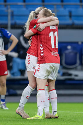 v.li.: Torschützin Sandra Maria Jessen (1. FC Köln, 6) und Pauline Bremer (1. FC Köln, 11) mit Torjubel, Jubel, jubeln, jubelt, optimistisch, Spielszene, Highlight, Freude über das Tor zum 0:2, DIE DFB-RICHTLINIEN UNTERSAGEN JEGLICHE NUTZUNG VON FOTOS ALS SEQUENZBILDER UND ODER VIDEOÄHNLICHE FOTOSTRECKEN. DFB REGULATIONS PROHIBIT ANY USE OF PHOTOGRAPHS AS IMAGE SEQUENCES AND OR QUASI-VIDEO., 08.12.2025, Hamburg (Deutschland), Fussball, Google Pixel Frauen-Bundesliga, Hamburger SV - 1. FC Köln *** from left goal scorer Sandra Maria Jessen 1 FC Köln, 6 and Pauline Bremer 1 FC Köln, 11 with goal celebration, cheering, jubilant, optimistic, game scene, highlight, joy about the goal to 0 2, THE DFB REGULATIONS PROHIBIT ANY USE OF PHOTOGRAPHS AS IMAGE SEQUENCES AND OR QUASI VIDEO , 08 12 2025, Hamburg Germany , Football, Google Pixel Womens Bundesliga, Hamburger SV 1 FC Köln xobx