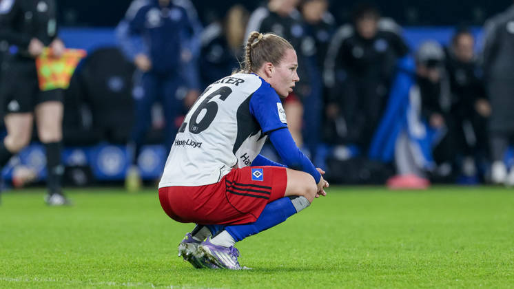 Christin Meyer (Hamburger SV, 16) enttäuscht über die Niederlage, Enttäuschung nach dem Schlusspfiff, Abpfiff, Highlight, Verlierer, verloren, Frustration, pessimistisch, traurig, DIE DFB-RICHTLINIEN UNTERSAGEN JEGLICHE NUTZUNG VON FOTOS ALS SEQUENZBILDER UND ODER VIDEOÄHNLICHE FOTOSTRECKEN. DFB REGULATIONS PROHIBIT ANY USE OF PHOTOGRAPHS AS IMAGE SEQUENCES AND OR QUASI-VIDEO., 08.12.2025, Hamburg (Deutschland), Fussball, Google Pixel Frauen-Bundesliga, Hamburger SV - 1. FC Köln *** Christin Meyer Hamburger SV, 16 disappointed about the defeat, disappointment after the final whistle, final whistle, highlight, loser, lost, frustration, pessimistic, sad, THE DFB REGULATIONS PROHIBIT ANY USE OF PHOTOGRAPHS AS IMAGE SEQUENCES AND OR QUASI VIDEO , 08 12 2025, Hamburg Germany , Football, Google Pixel Womens Bundesliga, Hamburger SV 1 FC Köln xobx