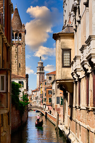 Ponte and Rio de S. Barnaba, Campanile Santa María dei Cármini - Santa María del Carmelo, Venice, Venezia, Veneto, Italy, Europe