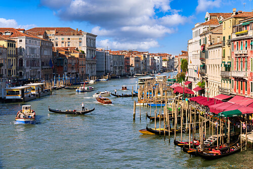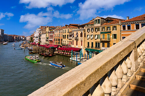 Views from the Rialto Bridge, Riva del Vin, Gran Canal, Venice, Venezia, Veneto, Italy, Europe