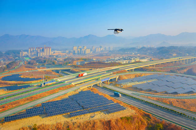 PV ANQING, CHINA - JANUARY 16, 2026 - Workers are installing photovoltaic power generation equipment next to a highway in Yuexi County, Anqing City, Anhui Province, China on January 16, 2026. Anqing Anhui China PUBLICATIONxNOTxINxCHN Copyright: xCFOTOx i1768569290931