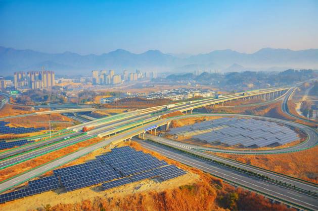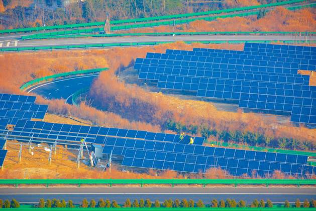 PV ANQING, CHINA - JANUARY 16, 2026 - Workers are installing photovoltaic power generation equipment next to a highway in Yuexi County, Anqing City, Anhui Province, China on January 16, 2026. Anqing Anhui China PUBLICATIONxNOTxINxCHN Copyright: xCFOTOx i1768569291858