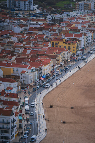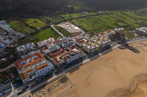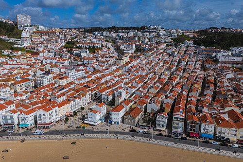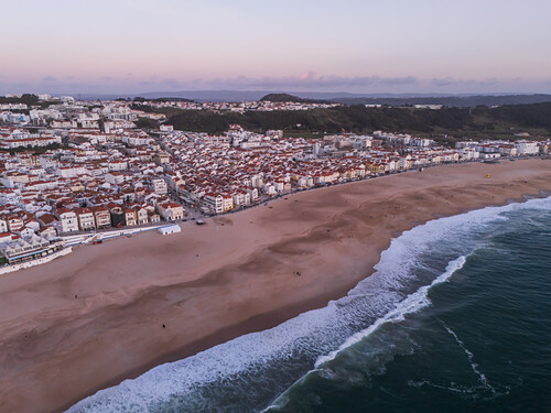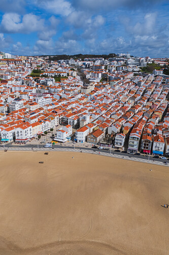 Aerial view of Nazare beach and cityscape, Portugal